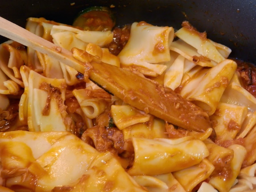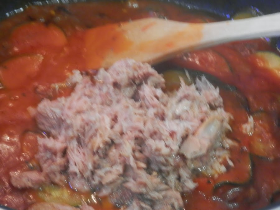 Hoy, en el blog, pasta con salsa de atún y calabacín.