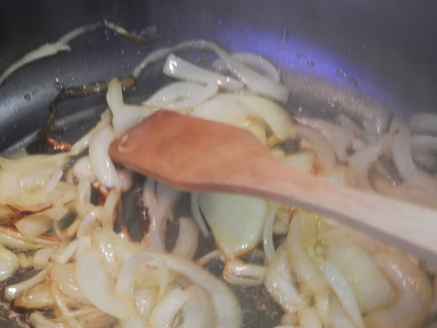 Ponemos una sartén con un par de cucharadas de aceite, cuando esté caliente, añadimos la cebolla y sofreímos bien.