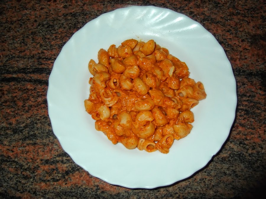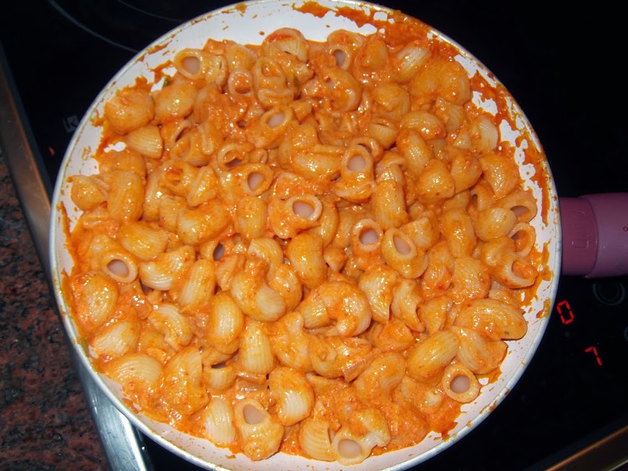 Escurrimos la pasta y lo echamos donde tenemos la salsa, también podéis echar la pasta en un plato y encima la salsa como prefiráis. En esta ocasión no he pasado la salsa por la batidora porque partí los trozos pequeños, pero si preferís que no tenga tropezones lo podéis pasar sin ningún problema. En estos pequeños detalles ya es a gusto del consumidor, igual que si hay niños pequeños en casa os aconsejo que echéis poca mostaza y pimienta molida para que el sabor no sea muy fuerte. Y por supuesto, lo podéis acompañar con queso rallado que ya sabéis que le da un toque muy bueno a la pasta.