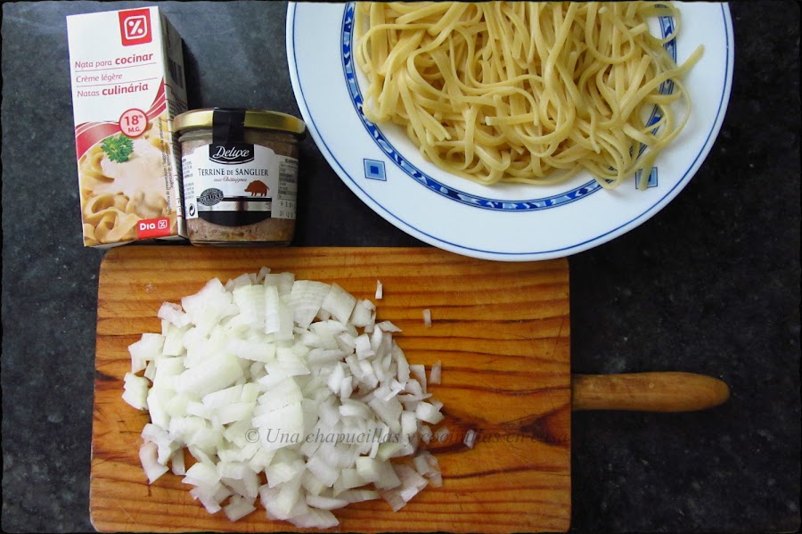 Esta es una manera diferente de comer la pasta y salir de los clásicos con tomate o al ajillo, si sois aficionados al paté esta opción os encantará. Yo he usado un paté de jabalí con castañas, podéis usar el paté que mas os guste.
