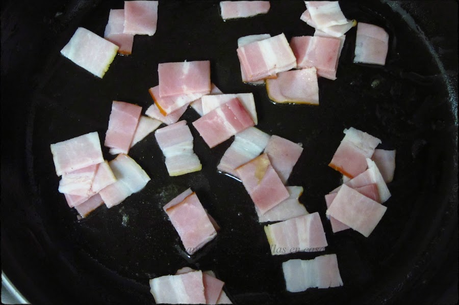 Saltear el bacon troceado previamente.