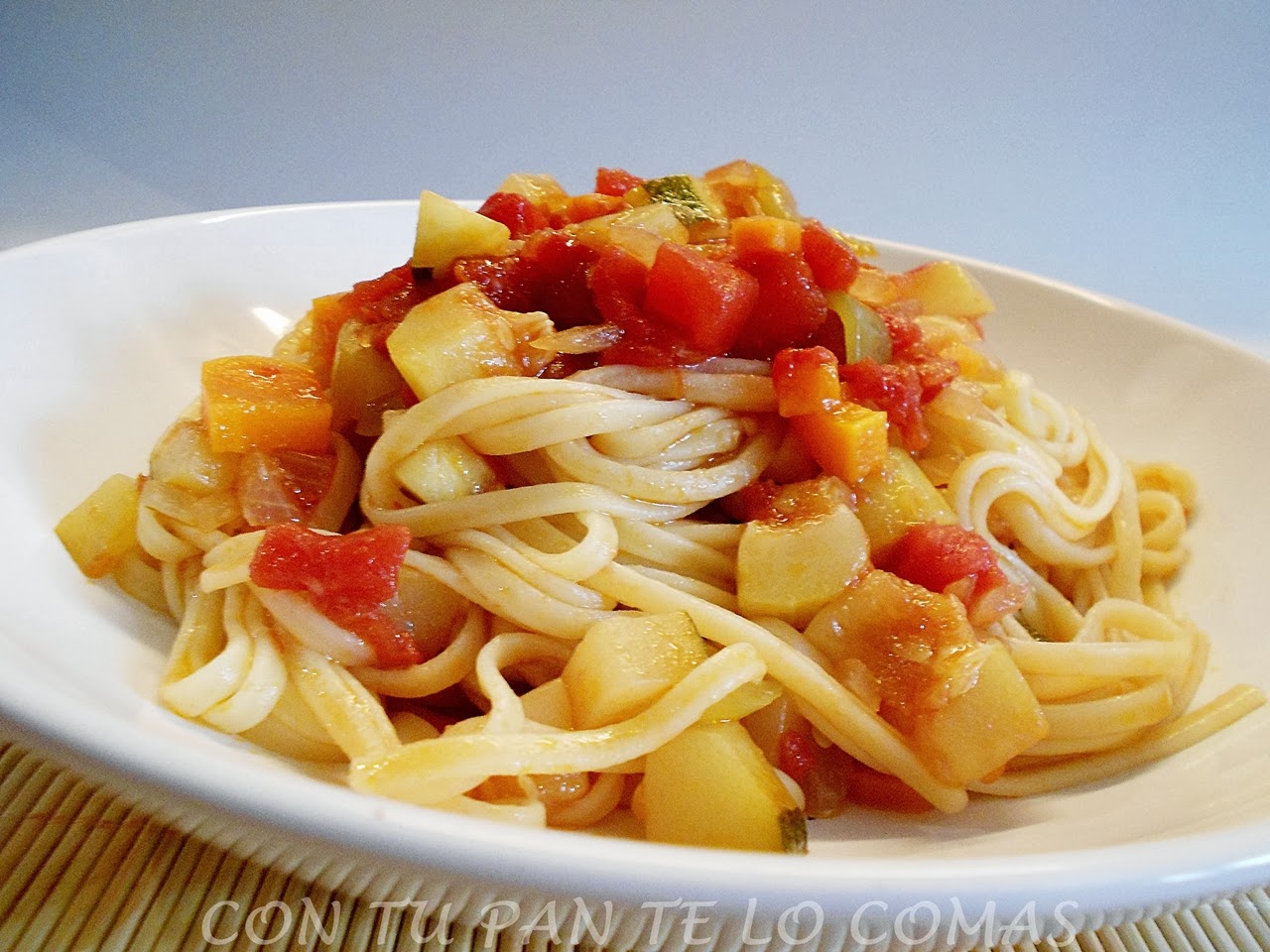 Estoy segura de que muchos de los que leéis ésto ahora mismo, estáis a dieta como yo y también estáis hasta el moño de pechuga a la plancha y lechuga. Por eso creo que este plato os va a gustar porque no hay que renunciar a la pasta.Todo el mundo sabe que la pasta por si misma no engorda, lo que engorda es la salsa que le ponemos sobre todo si lleva nata (crema de leche) y cosas grasientas tan ricas pero prohibidas para lo que nos interesa.