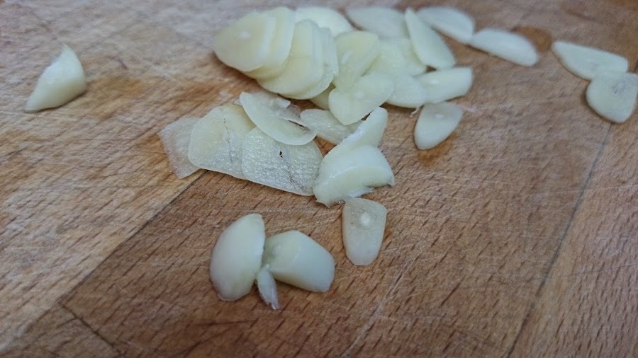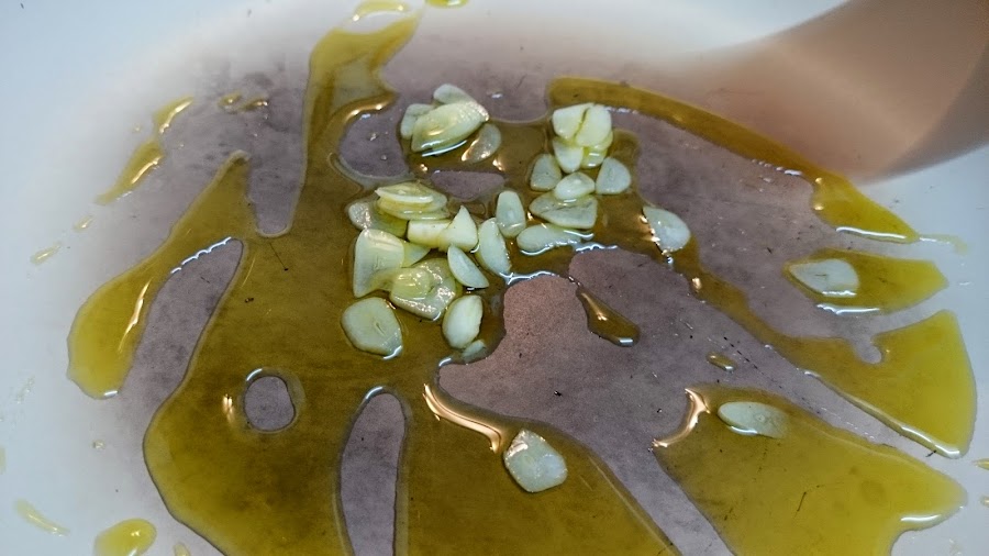 Empezaremos con los ajos echándolos a una sartén con una cucharada de aceite