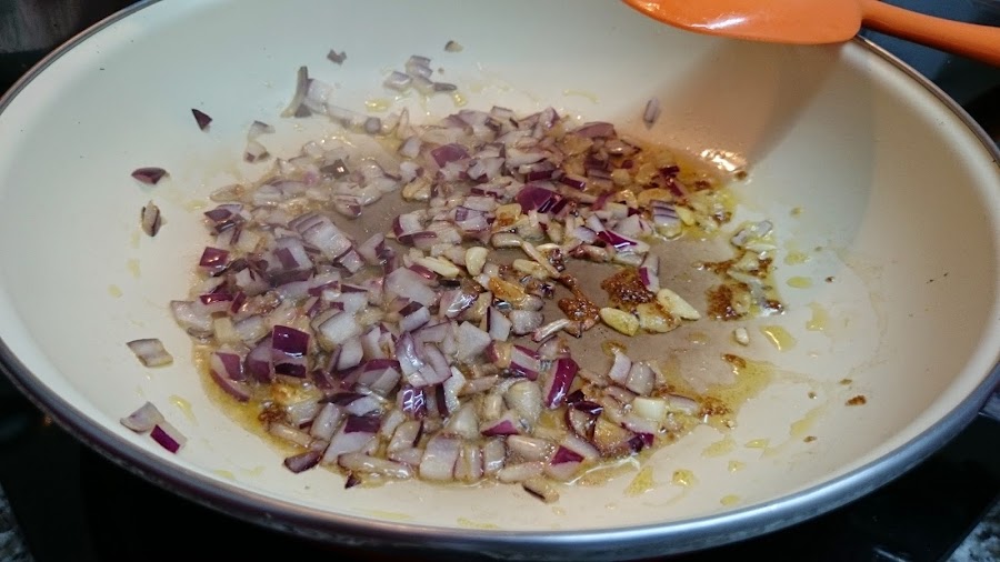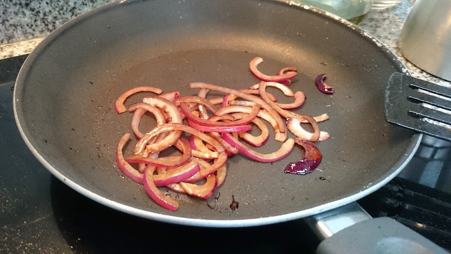 Por otra parte caramelizaremos la cebolla restante.