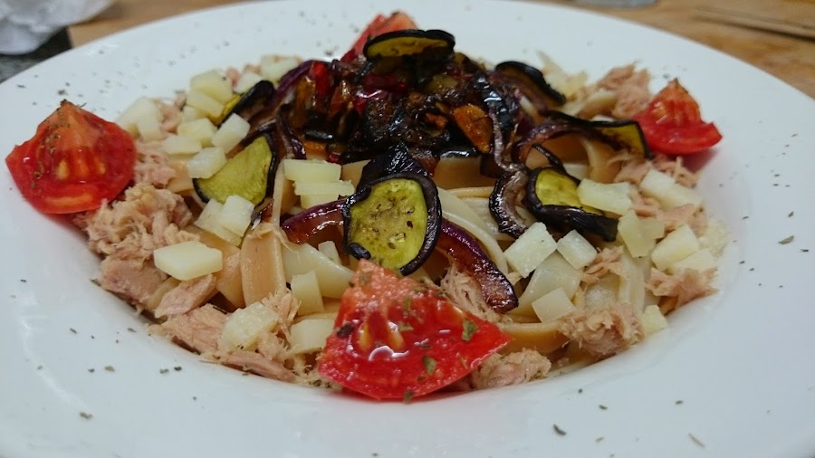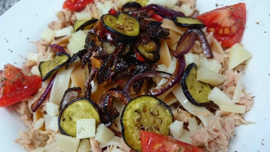 Es una ensalada de otoño ni muy fría ni muy caliente y puede pasar por un plato principal porque también lleva pasta junto con la verdura. Es un pato rico y saludable sin grasas saturadas!