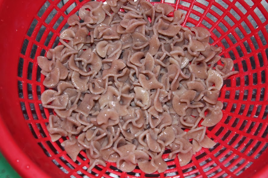 La espelta es considera como el origen de todas las variedades de trigo actuales, aunque no ha sido hasta esta última década cuando la popularidad ha crecido gracias al reconocimiento de sus múltiples cualidades nutricionales y a su uso en la gastronomía. Como podréis ver en las fotos la pasta es algo más oscura y tiene un sabor diferente, el único problema es que es tres o cuatro veces más cara que la pasta normal.