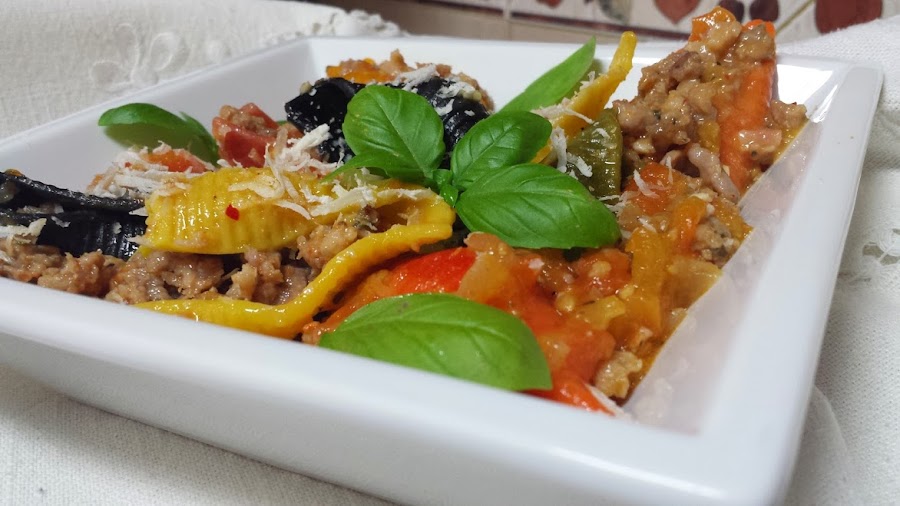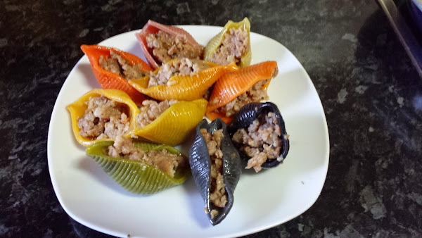 La pasta que hemos utilizado es Conchiglioni de seis colores. Una pasta grande y cóncava que va muy bien para rellenos.