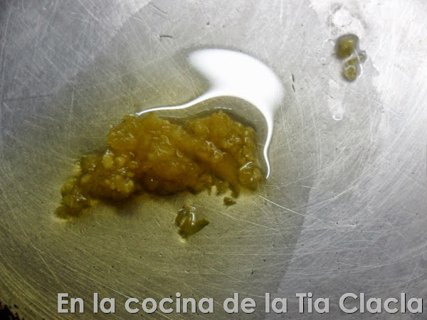 · En un sartén caliente, ponga la cucharada de aceite y el ajo picado.