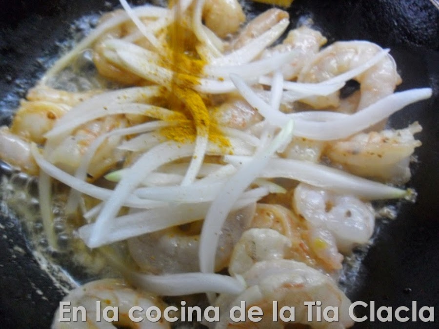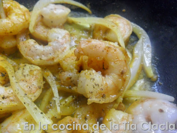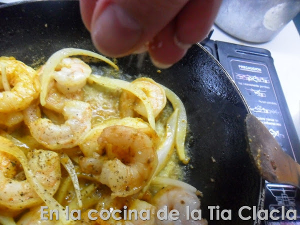 · Agregue los camarones.