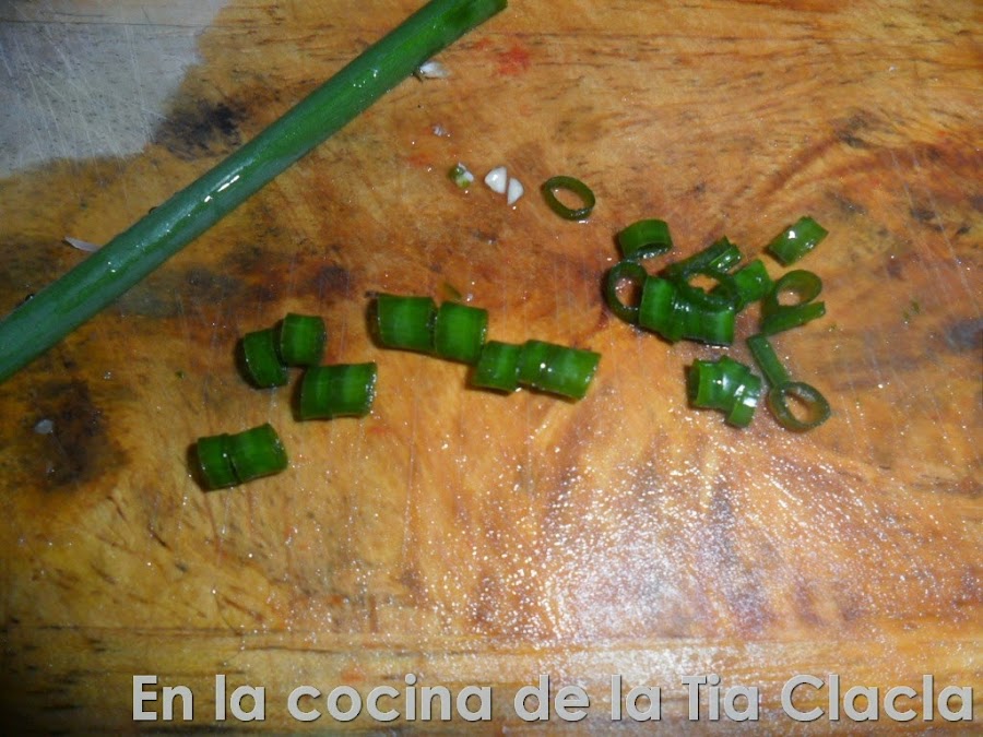 · Ponga el chile y el cebollín y agregue un chorro de aceite de oliva.