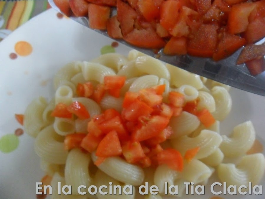 · Pique el tomate en cuadros.