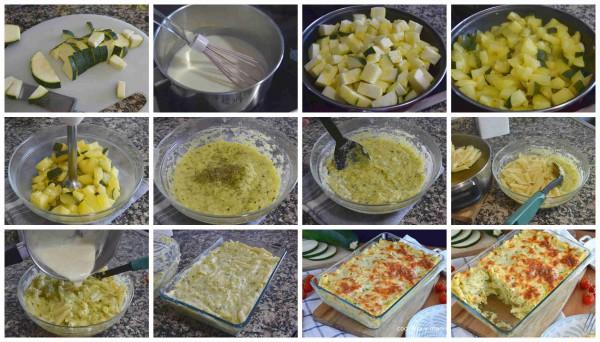 Al mismo tiempo que hacemos la bechamel nos ponemos con la salsa de calabacín; los partimos en trozos no muy grandes; podéis pelarlos o dejarlos con esta; a vuestro gusto.