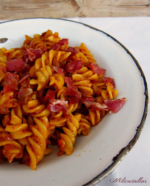 Hace tiempo que publiqué una receta de macarrones con panceta y sobrasada aquí pero hoy Palmira me ha sugerido el jamón serrano. ¡No me los podía quitar de la cabeza! así que en cuanto he llegado hoy a mi casa, me los he tenido que hacer ¿Decirme que a vosotras os pasa lo mismo??Estaban de 10! Y no me cabe la menor duda de que mañana hubieran estado mejor de no ser porque tengo un ratón de 37 años que se me los ha merendado con premeditación y alevosía! Su excusa...olían de vicio....Eso no es una excusa valida ¿verdad?