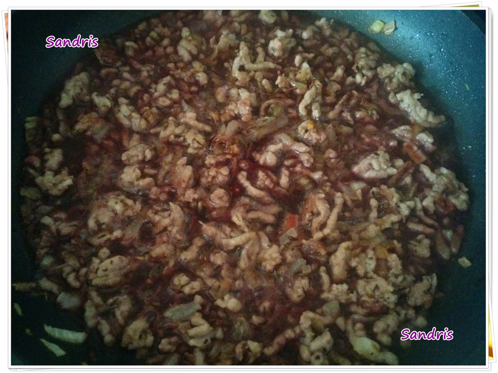 He pochado la cebolla y luego le he agregado la carne picada y las especias. Luego le he agregado un poco de vino tinto, lo he dejado reducir y luego le he echado el tomate triturado. Dejamos que todo se cocine bien para que coja un buen sabor intenso y listo!!! Así de fácil!!!