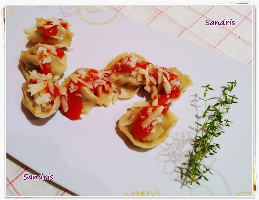 Esta vez he decidido hacer tortellini. Me gusta variar las formas de la pasta fresca, cada vez le doy una forma diferente; me gusta jugar tanto con el relleno, como con el color y la forma!!! :-)