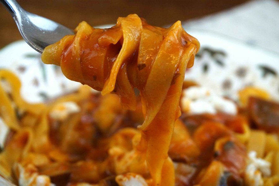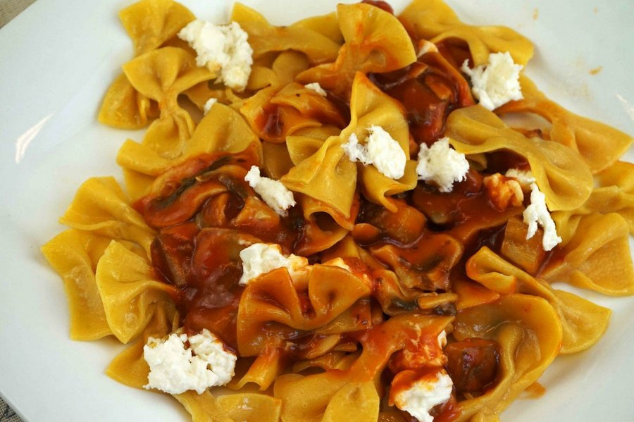 De esta pasta fresca salieron dos versiones, una con huevos y calabaza, y otra vegana, únicamente con calabaza, las dos se la comen por igual, aunque la diferencia es que la pasta vegana es un poco más dulzona y sabe mas a calabaza. ¡A mi me encanta!