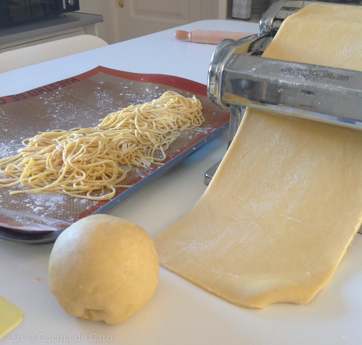 Podríamos decir que estas son dos recetas, porque por un lado tenemos la pasta fresca y por el otro el plato elaborado con la salsa, pero claro las normas indicaban que tenía que estar cocinada.