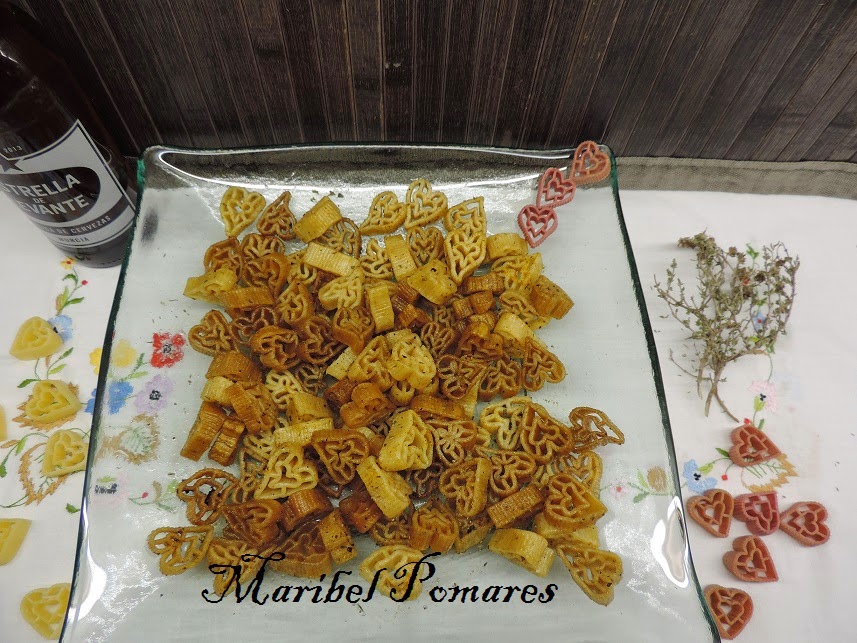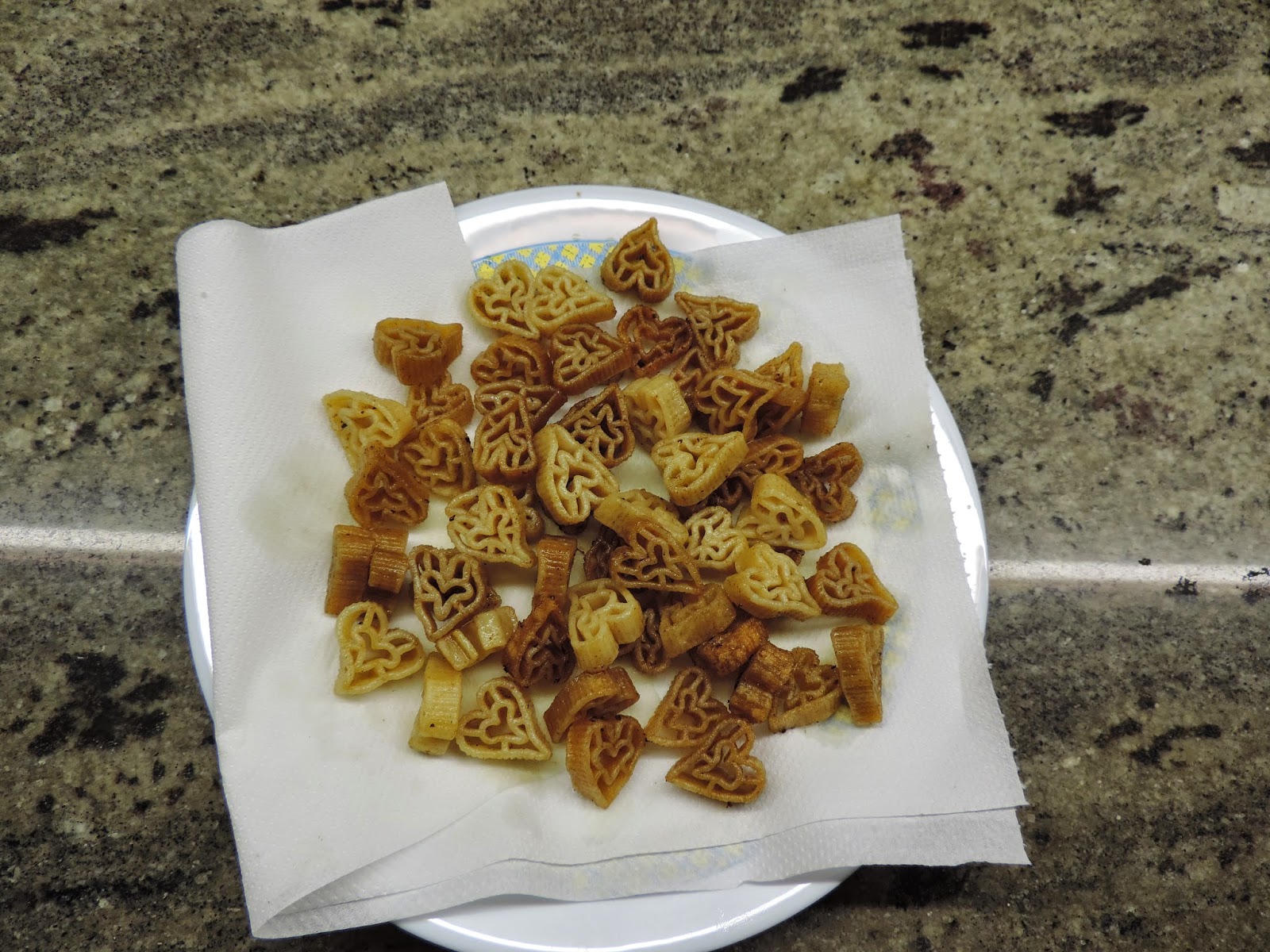 Vamos echando en el cestillo un poco de pasta y la freímos, la iremos sacando sobre papel absorbente.