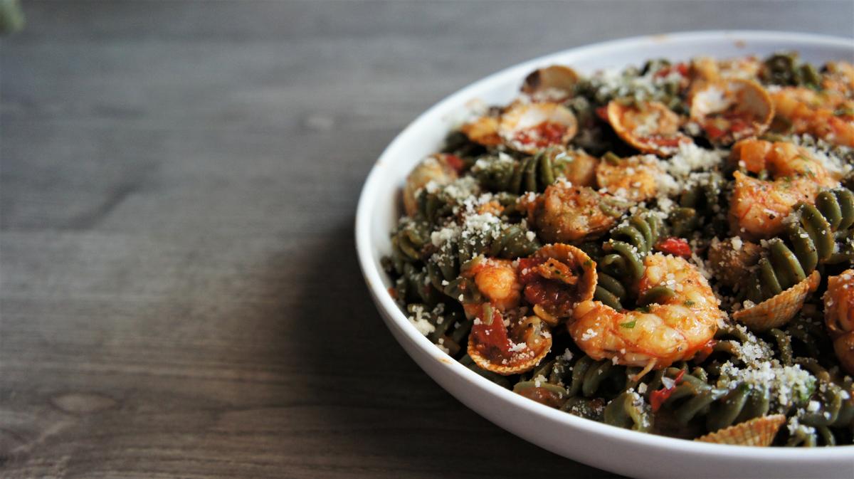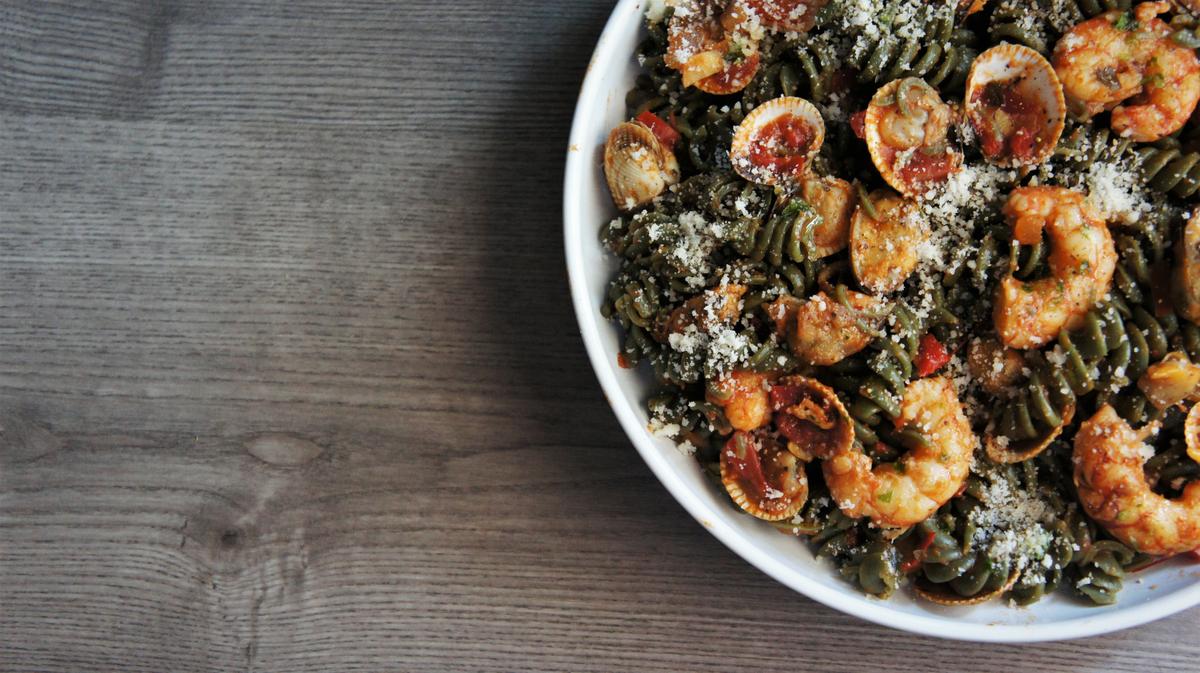 Por último, incorporamos a la sartén en la que teníamos el sofrito la pasta cocida, el perejil picado, los berberechos y los mejillones y el caldito. Removemos unos minutos.
