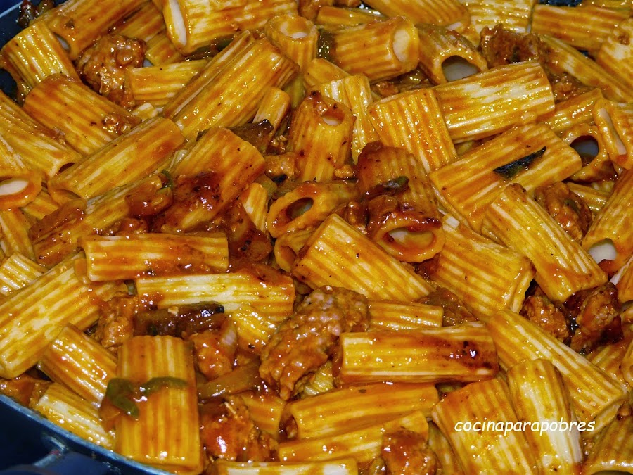 En casa de mis padres solíamos comer así los macarrones, aunque el sofrito que se prepara en casa suele ser distinto, como ya sabemos cada maestrillo tiene su librillo y esta receta admite muchas posibilidades.. yo me quedé con una muy básica pero resultona.