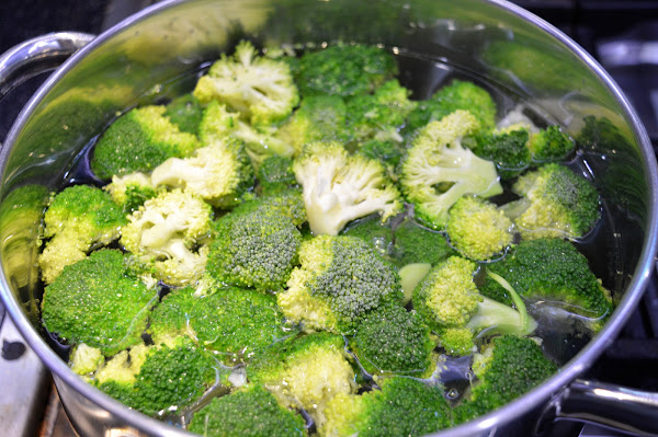 Escaldamos el brócoli unos 3-4 minutos hasta que esté al dente, no debe pasarse. Lo colamos y enseguida lo ponemos en un bol con agua y mucho hielo para que nos quede bien verde y no pierda el color ni la textura.