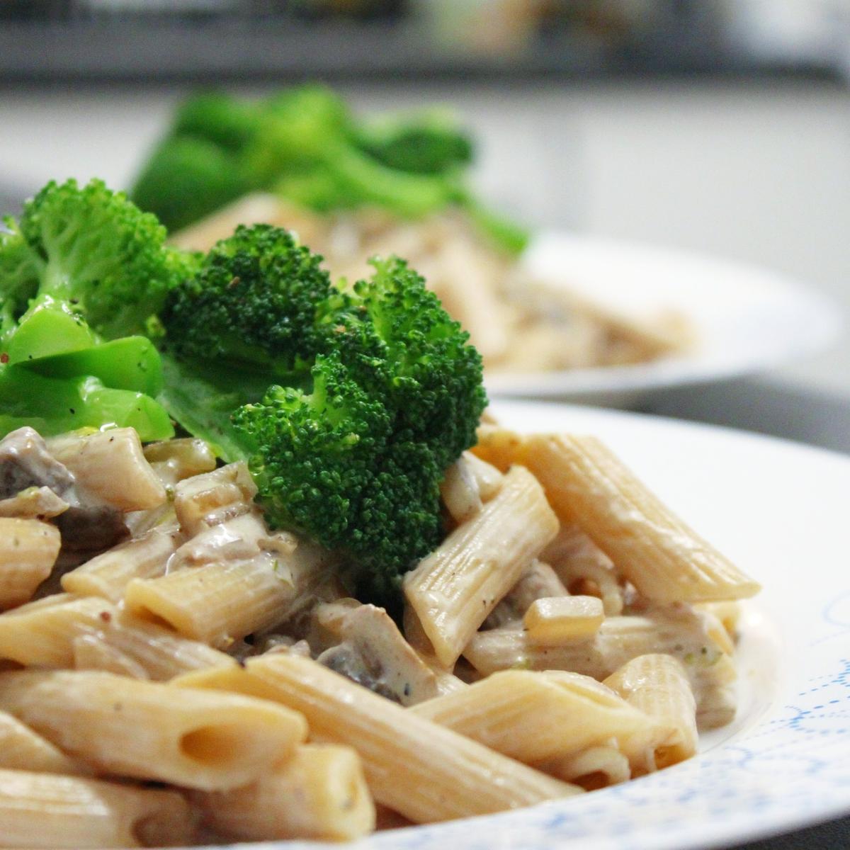 Los días de entreno nos interesa que la cena sea de preparación rápida, pero que a su vez sea nutritiva y deliciosa. Las cenas con pasta integral son nuestras favoritas ya que nos proporciona energía por su alto contenido en hidratos de carbono. Aunque como ya sabéis, inmediatamente después de terminar el entrenamiento tomamos un batido de proteína a base de plátano y mezcla proteica vegana. Otra cosa que fue fácil de cambiar fue el queso parmesano, hoy encuentras versión vegana y además tienes la opción de usar levadura nutricional como sustituto, así que no te preocupes, hay muchas alternativas.