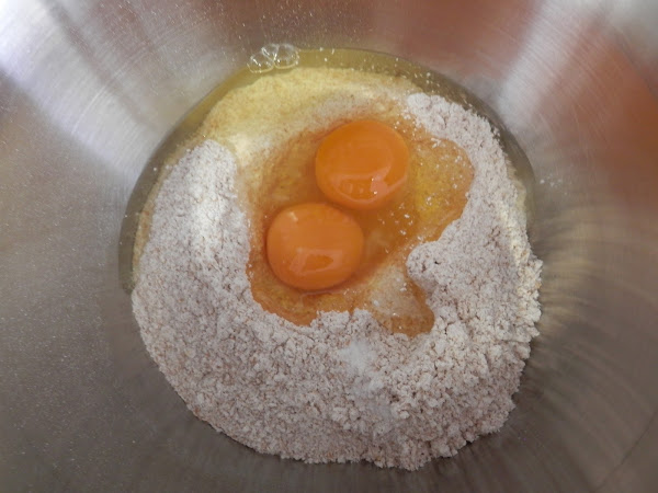 Haz un hoyo enmedio de la harina y añade el huevo, el aceite y la sal.
