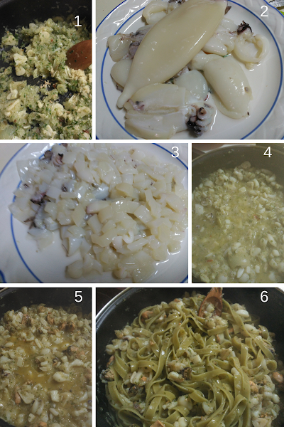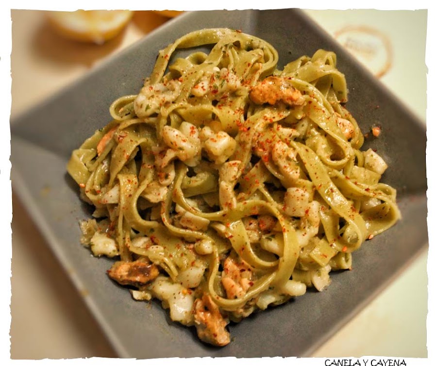 Siempre recomiendo que la salsa se prepare antes que la pasta, pero en este caso para que no se endurezca la sepia ni el calamar, si tienes dudas si se van a preparar al mismo tiempo, pon a cocer unos minutos antes la pasta, la pasas por agua fría y le añades un poco de aceite de oliva en crudo, de esta forma evitarás que se pegue.