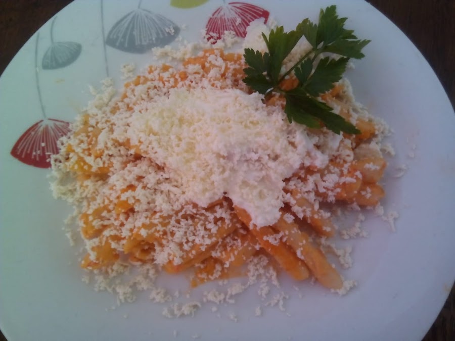 Poner a disolver la mantequilla, agregar la salsa licuada y las hojas de laurel; y esperar a que empiece a hervir; entonces es momento de agregar la pasta. Tapar y dejar sazonar por 4 minutos aproximadamente. Rectificar el sazón (probar de sal). Y listo!!!!.