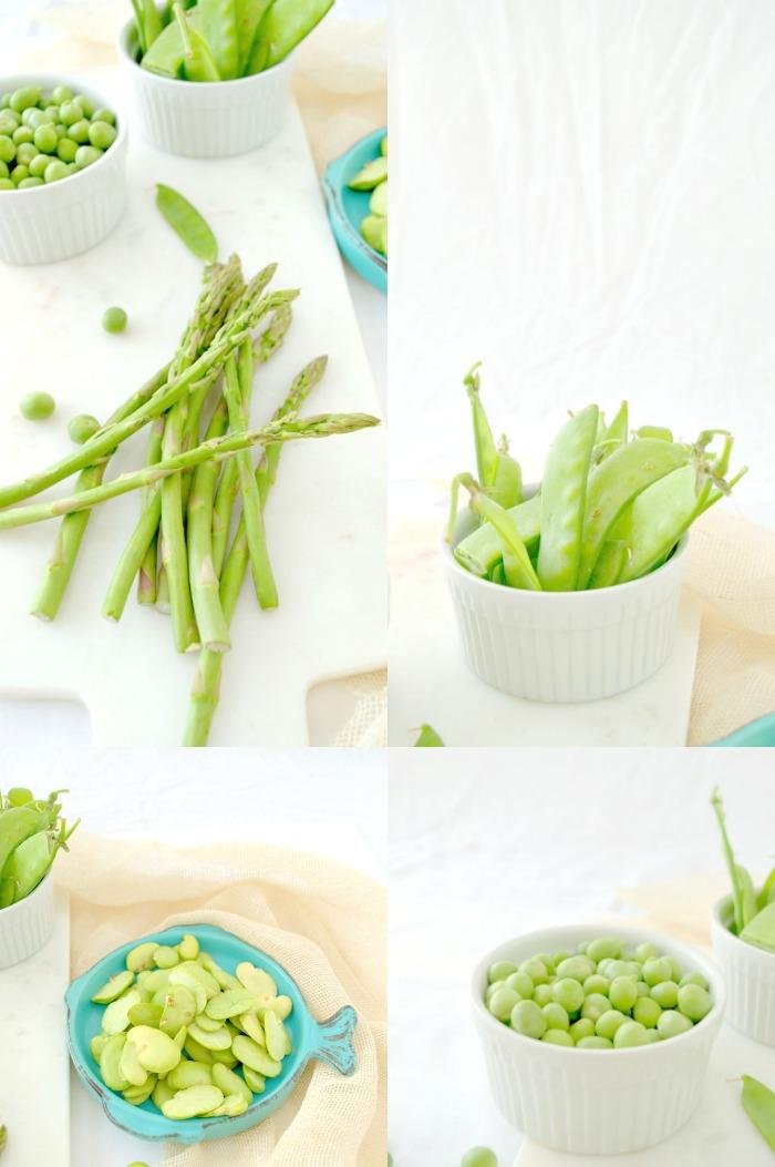 1. Cocemos la verduras (espárragos, guisantes, tirabeques y habas). Sólo hasta que estén al dente, no pasarse. Escurrir y reservar.