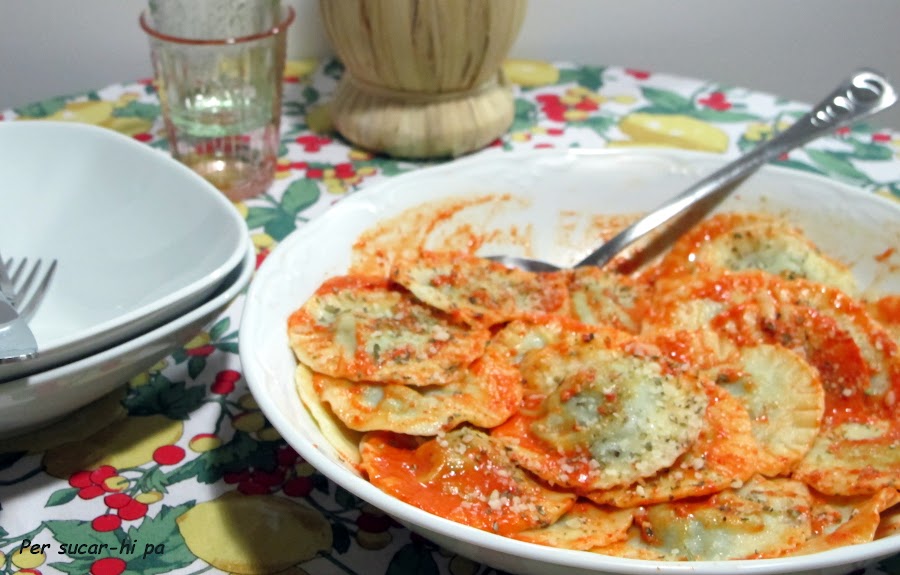¿Y por qué no rellenar los raviolis de bacalao y espinacas? La idea la he encontrado en el blog Per sucar-hi pa