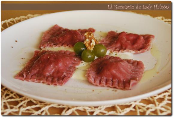 ¿Sabéis cómo hacer pasta de colores? En el blog El Recetario de Lady Halcón nos enseñan cómo hacer ravioli de remolacha rellenos de carne y nueces ¡Son de color rosa!