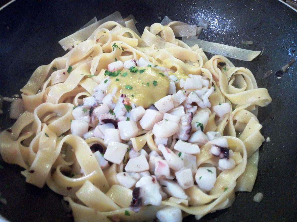 La receta de la pasta tagliatelle con sepia y garbanzos, es una receta sencilla, a pesar de un largo tiempo de preparación (tiempo que se puede reducir, utilizando garbanzos cocidos). Yo preparé una cantidad mayor, para luego buscar más soluciones de platos, entre ellos, el plato de pasta que voy a compartir (más recetas con garbanzos).