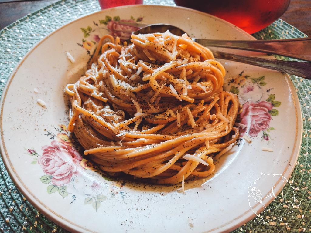 Lo interesante de la pasta tostada previamente a la cocción es que combina a la perfección con las salsas mas sencillas. En éste caso yo me he decidido por hacer la salsa cacio e pepe (queso y pimienta). Idealmente se debe hacer con queso pecorino (de leche de cabra). Yo sólo he podido encontrar un buen parmesano curado, que le ha quedado casi tan bien como el pecorino. Una salsa aglio e olio (ajo y aceite) también le quedaria de muerte, y ya si a ésta última le añadimos unas gambitas o unas almeja (vongole)… Pues ni te cuento… Y ya paro, porque hace solo un par de horas que me comí mi pasta tostada cacio e pepe y ya se me esta haciendo la boca agua!