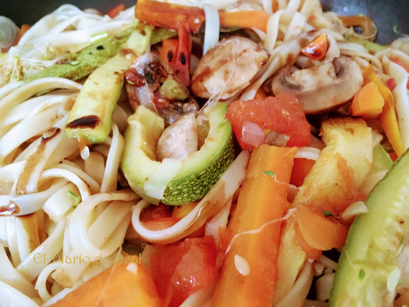 Una combinación de vegetales y pasta a mi estilo china!