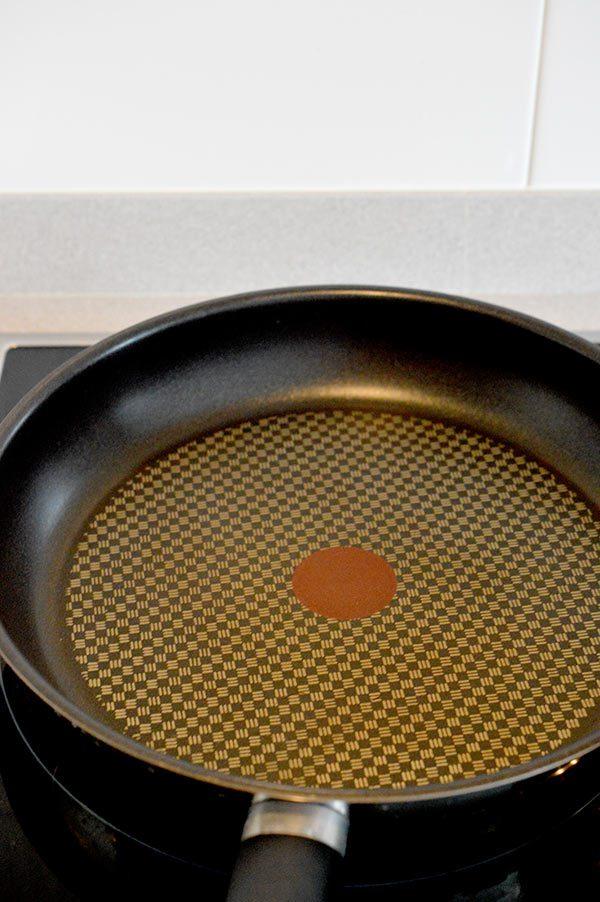 Calentamos un chorro de aceite en una sarten antiadeherente.