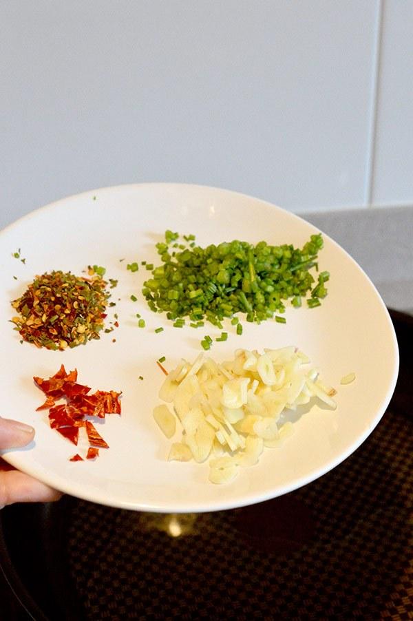 Aproveche que mis padres habían estado con mi sobrina en Venecia y me han traído unas especias de allí, pero perfectamente podéis hacerlo con unas cayenas. Yo he usado una mezcla de especias y una guindilla, y es que es esta casa cada vez nos gustan las cosos mas picantes!