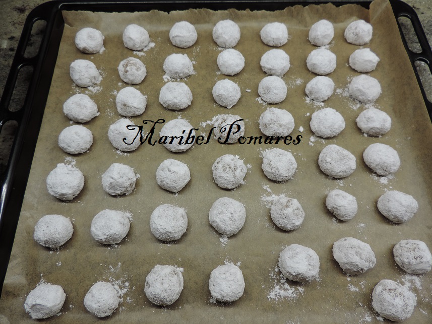 Vamos haciendo bolitas y poniendo en un plato con azúcar glas.