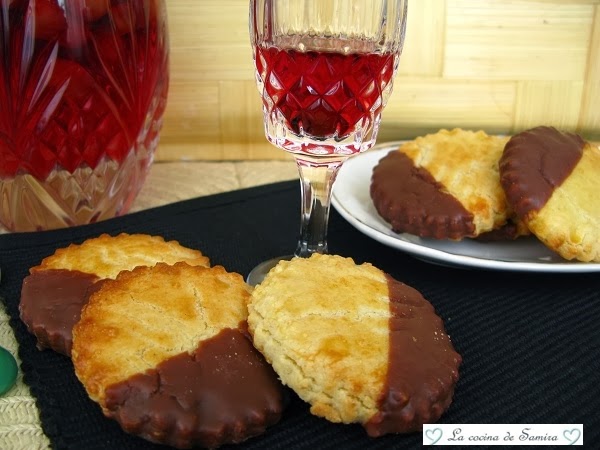 Una vez frias, las bañamos en chocolate. Para ello, lo derretimos en un bol al microondas o al baño maria y después bañamos la pasta por un lado, volvemos a poner en la rejilla y esperamos a que se endurezca. (Ponemos un papel de horno debajo de la rejilla para que lo que caiga al escurrir , aprovecharlo de nuevo, aquí no se tira nada oiga je je ).