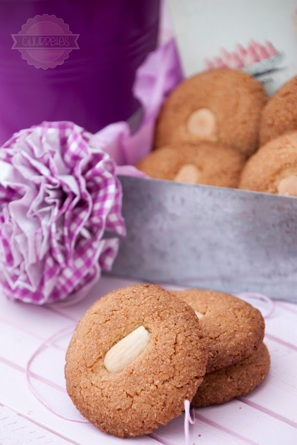 Poner encima una almendra y hornear a 180º C hasta que estén doraditas. Las mías han tardado unos 20 minutos.