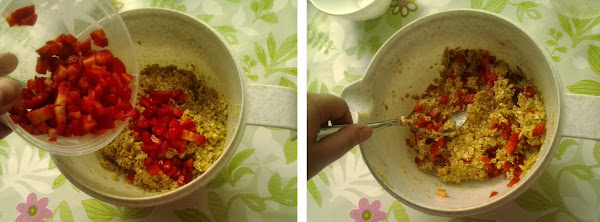 Añade la avena y el salvado. Mezcla bien. No te preocupes si la masa te resulta muy pegajosa, tiene que quedar así.