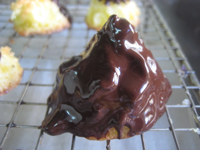 Preparación: Mezclar todos los ingredientes y trabajar un rato la masa. Seguidamente ponerla en manga pastelera con boquilla rizada gruesa y escudillar porciones en una bandeja de horno previamente forrada con papel de horno. Una vez así preparadas cocer en el horno, hasta que estén un poco doraditas. A 180-185º C aproximadamente 15 minutos. Dejar enfriar sobre rejilla. Mientras tanto fundir en el microondas con mucho cuidado o al baño María el chocolate. Una vez fundido añadir el aceite, remover bien y bañar las pastas de coco como se desee: entres, medias, sólo la puntita. Dejar secar el chocolate y listas para comer. Muy, muy ricas