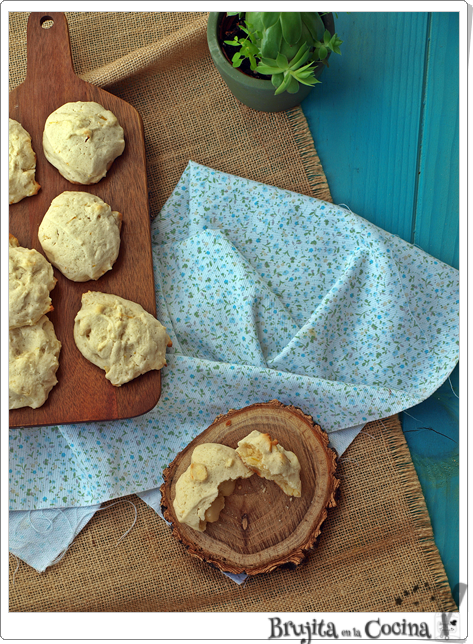 Cogemos cucharadas y vamos colocando en una bandeja de horno con papel, metemos al horno precalentado a 190ºC durante 10-12 minutos. Dejamos ne la bandeja y pasamos a rejilla a enfriar totalmente.