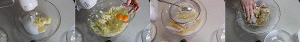 Batimos la mantequilla con el azúcar hasta que se forme una crema, añadimos los huevos y seguimos batiendo hasta que se integren, añadimos la harina tamizada y amasamos con la paleta y luego con las manos hasta formar una masa que no se pegue en las manos.