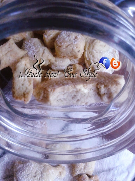 Esparcimos azúcar glass sobra la encimera, extendemos la masa con la ayuda del rodillo. Cortamos con los moldes, con un pequeño molde o dedal limpio hacemos un agujero en algunas de ellas. Las pasamos a la bandeja de horno cubierto con papel de horno, las cocemos a 165º C unos 10 o 12 minutos, sin que lleguen a dorarse por fuera.
