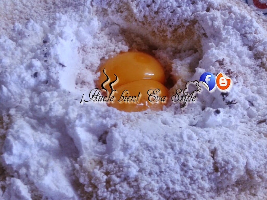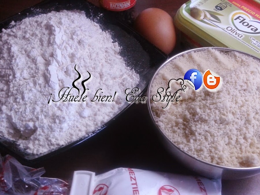 1.- En una superficie limpia, tamizamos la harina, esparcimos por encima la harina molida, el azúcar glass, la sal y las especias.
