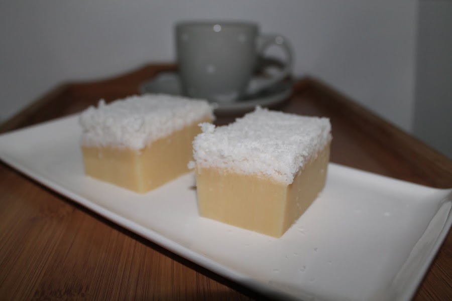 Para preparar la cobertura, ponemos en un cazo al fuego el azúcar, la leche de coco y el coco rallado. Cocemos hasta que consigamos una pasta homogénea, cuando veamos que el coco rallado se ha mezclado bien con los otros ingredientes.
