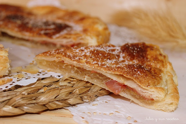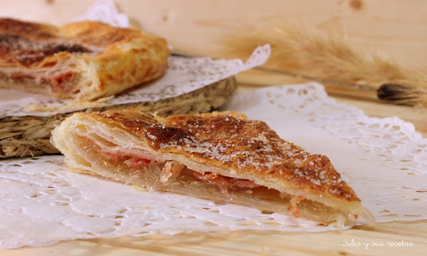 Pero hay una versión que es salada-dulce, la que os traigo yo hoy...con jamón serrano... mi favorito. La mezcla dulce-salado me gusta mucho. ¡Os lo recomiendo , es un pastel delicioso!