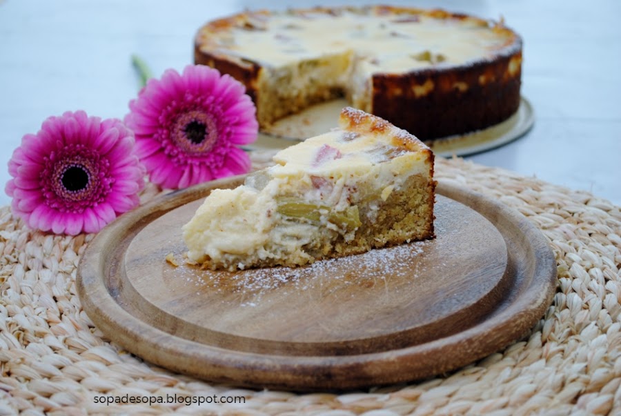 Pastel cremoso de Quark con ruibarbo