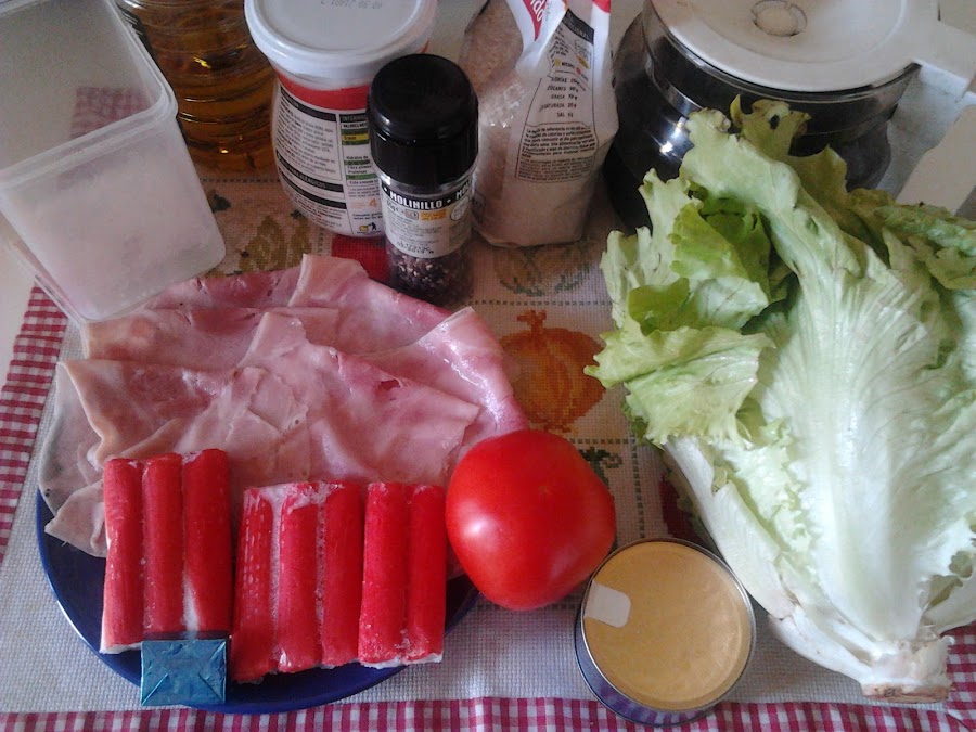 Tuve esta idea, tras ver varias recetas en Internet y me pareció que saldría bien, pues lleva poca mayonesa y además es un plato muy completo para tomar como plato único.